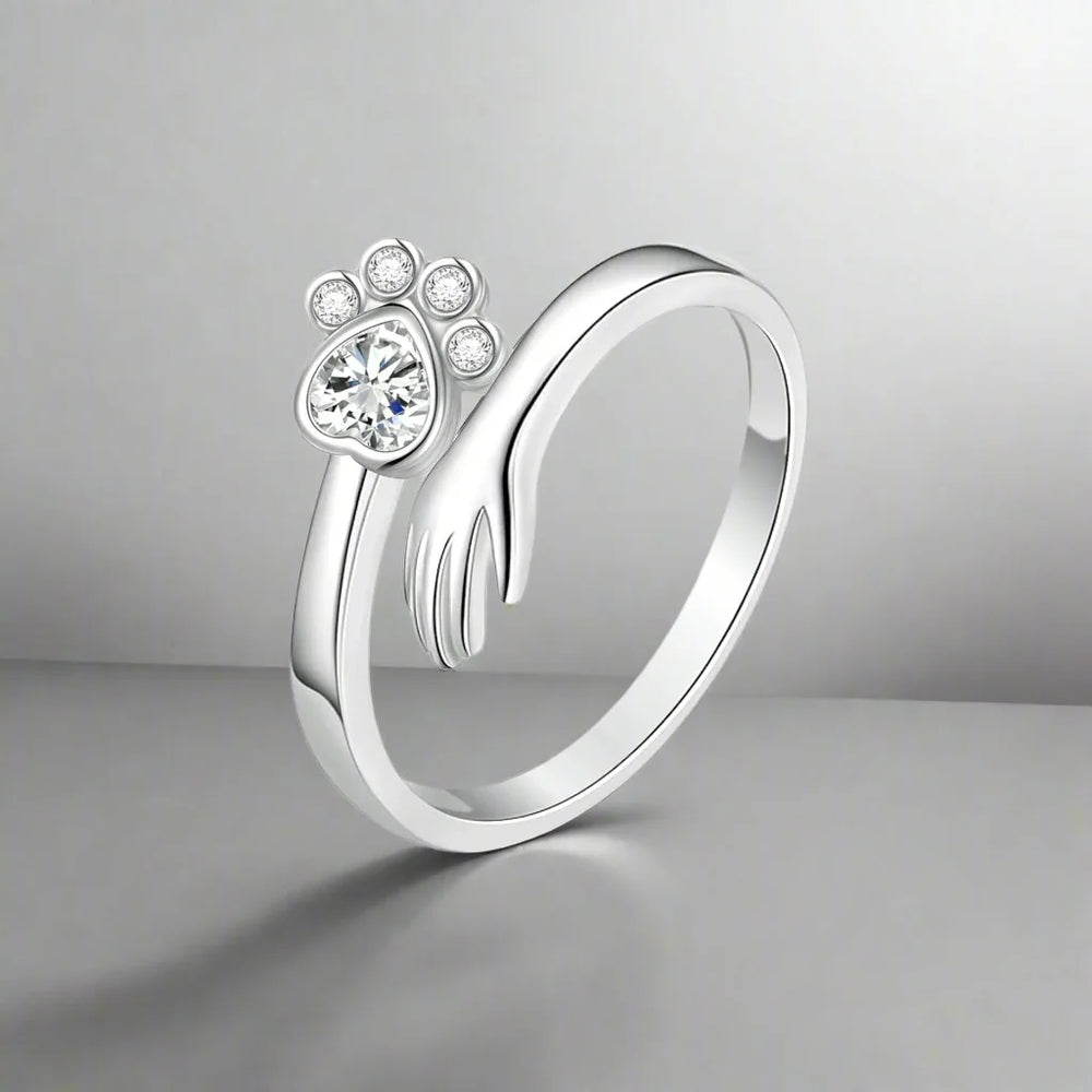 Tento jedinečný prsten s tlapkou z pravého 925 sterlingového stříbra představuje dojemné spojení mezi člověkem a zvířetem: Ruka, která jemně drží tlapku – silný symbol věrnosti, přátelství a neochvějné lásky.
