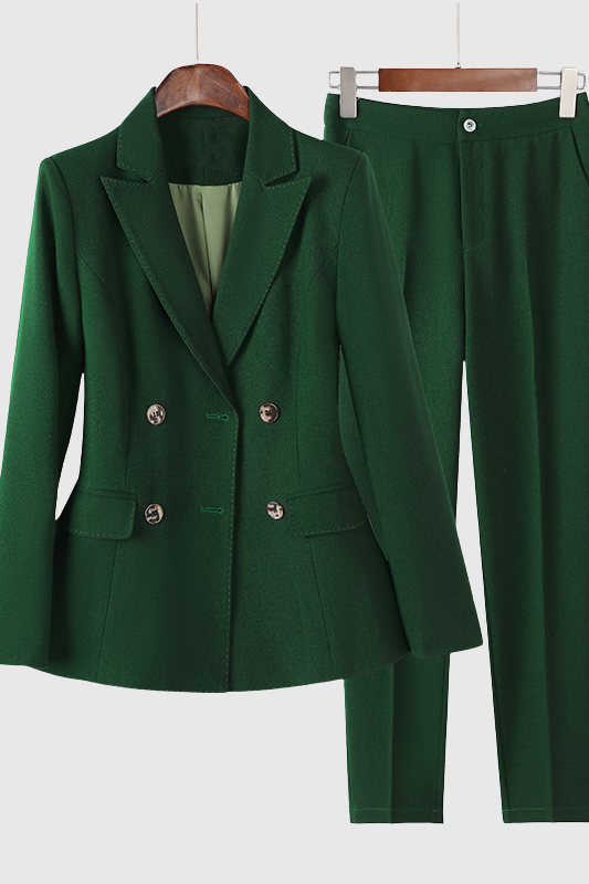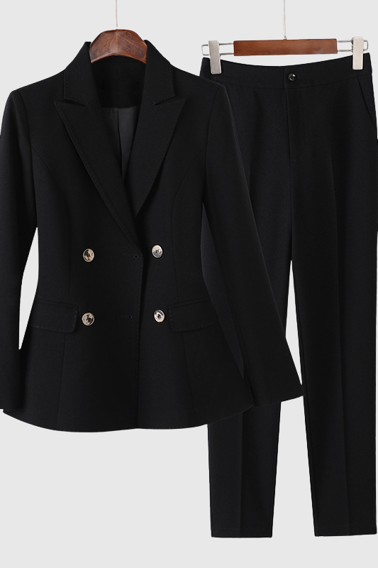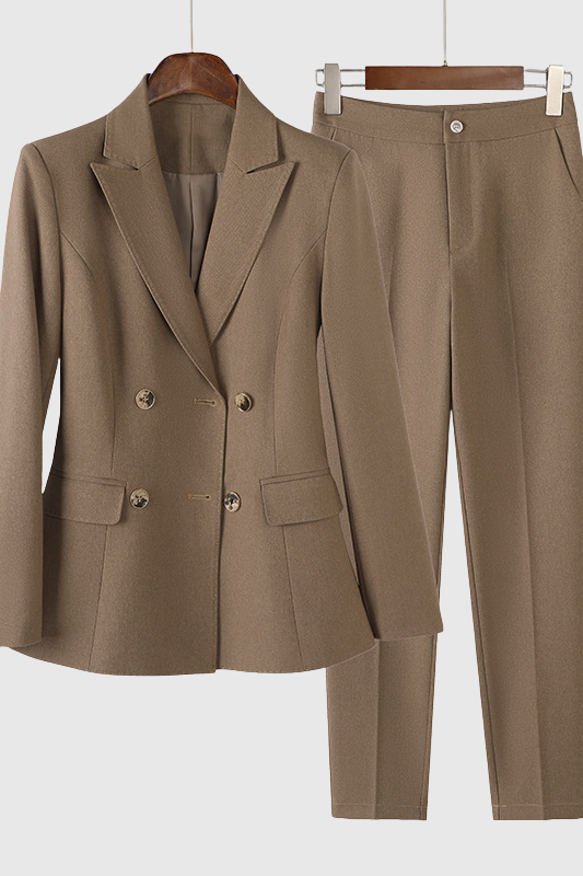Náš oblíbený komplet s dvojitým sakem kombinuje výraznou strukturu a sofistikovanou ženskost – je stvořený pro to, aby přitahoval pozornost, ať už v konferenční místnosti, nebo na ulicích města. Díky strukturovaným ramenům, preciznímu střihu a štíhlé siluetě vyzařuje tento bestsellerový komplet sebevědomí, sofistikovanost a nadčasovou eleganci na každém kroku.