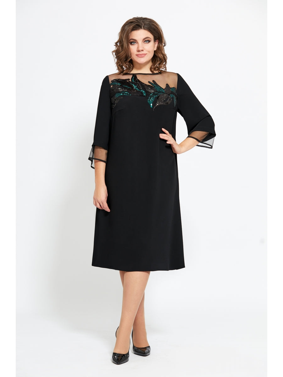 Dodejte svému šatníku styl a sofistikovanost díky těmto elegantním černým šatům, které spojují jednoduchost s výraznými detaily. Volnější střih krásně splývá a lichotí každé postavě, zatímco průhledný tylový živůtek s luxusní zelenou výšivkou vytváří jedinečný, slavnostní vzhled.