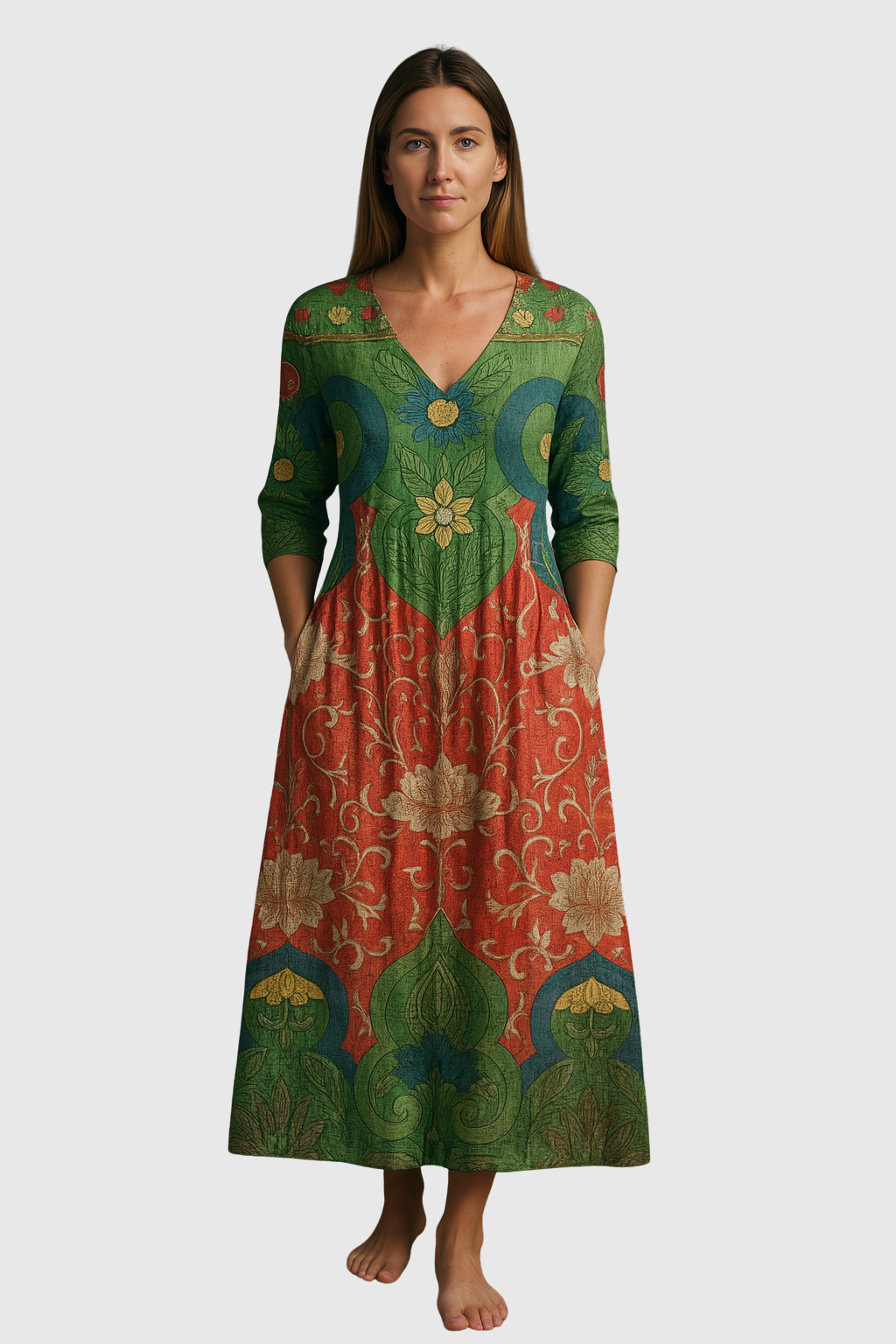 Výstřih do V a dlouhé rukávy dodávají ženskou siluetu a šaty, které budeš nosit s radostí – od procházek zahradou až po víkendový brunch s přáteli.
